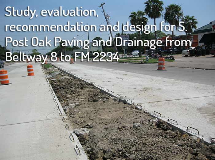 FCM-Engineers, PC (FCM) formerly PTI, Inc. staff project experience include the civil engineering design of paving, storm water, traffic design, water transmission and distribution pipelines, wastewater collection and conveyance systems, and water and wastewater treatment facilities projects. Specialty services offered include a full suite of hydraulic and structural engineering modeling, water distribution system water quality and advanced water treatment engineering, and program management. Architectural design includes schools, buildings, facilities design and construction management and inspection includes street paving, bridge construction, waterline replacement, pump stations, and buildings. FCM has established a reputation for providing quality services in a timely manner. FCM not only has delivered the completion of projects within allowed budget and schedule but has completed fast tract project like Almeda Road Improvement on time and within budget. FCM staff assisted the City of Houston in development of the current City of Houston standard details, specifications for new projects and rehabilitation projects, design manuals and guidelines. FCM has a good technical understanding of the functions of the contract document and City of Houston design criteria for infrastructure projects.